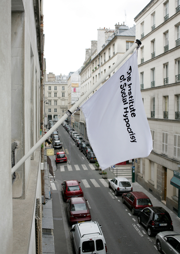 The Institute of Social Hypocrisy is an artificial organization that fronts an artist-led project, run by the artist Victor Boullet in the centre of Paris. The ISH is conducted in the form of a protracted performance piece and its very existence is brought about by inviting collaboration with other participants.