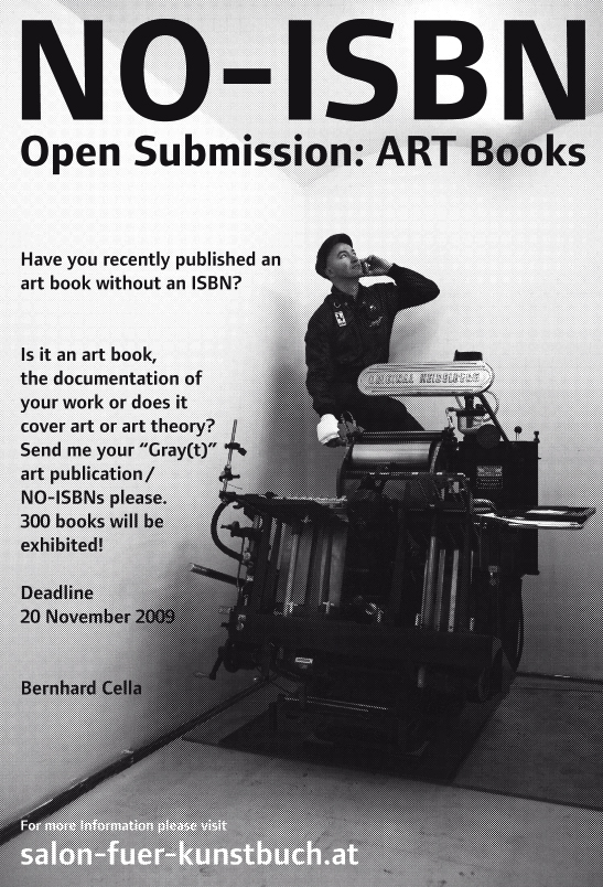 Have you recently published an Art book without ISBN number? Is it an Art book, the documentation of your work or does it cover Art or Art theory?I am looking for publications by international practitioners in the fields of contemporary Art and theory that have recently been realised without a distributor/publisher.