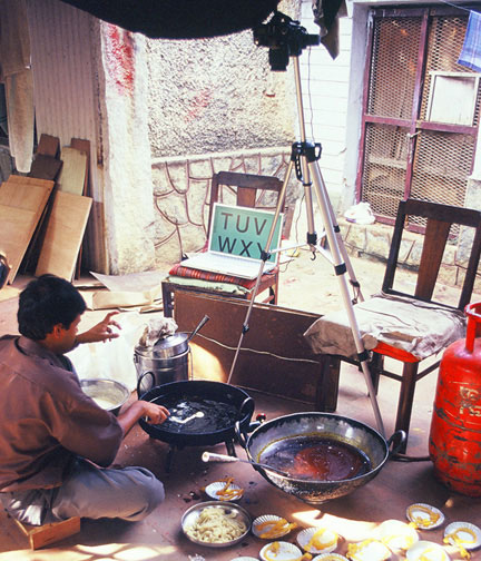 Typeface created out of Jalebis in Bangalore, India. Jalebis are a pretzel-like dessert commonly sold in India. Letterforms based on Helvetica Bold.
