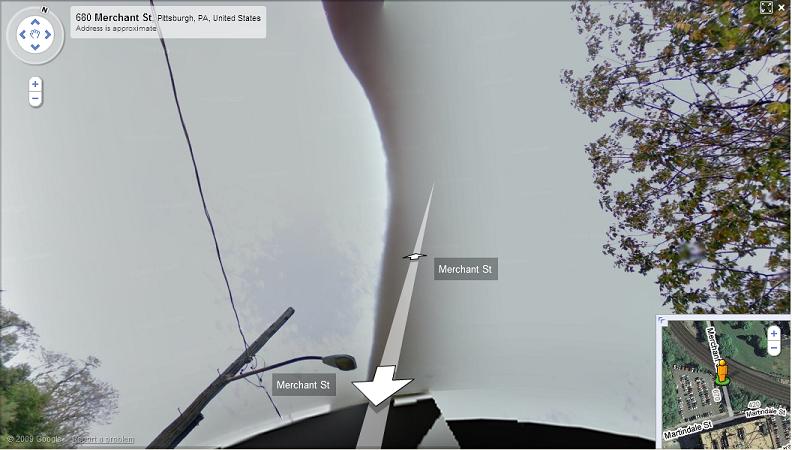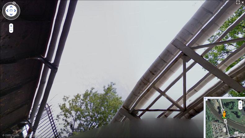 In the images below you can clearly see the bridge that the driver tried to go under but in the following pictures you see that the attempt resulted in a bent camera rig as the following pictures are looking straight up.