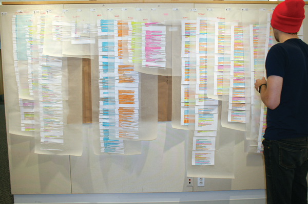 Collaborative workshop with Aubrey Stalnaker, Adam Loczynksi and Kristi Pesick. An intense weeklong workshop with Thomas Castro and Jeroen Barendse of Studio LUST. Given 44-minutes of an interview with the composer John Cage by Morton Feldman we developed a concept based on a converstation we had in reaction to the interview. As a group we decided that our conversation was fragmented and disjointed, often bouncing from topic to topic. We then deconstructed and analyzed our conversation into as many fragments as we could: from the smallest representation, a single letter of the discussion, to the largest - the entire conversation.