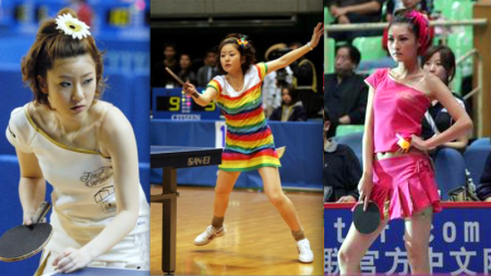Naomi Yotsumoto is the most-talked about ping pong player in Japan right now, and it’s not just because of her paddle-swatting skillz. The petite 29-year old Tokyo native is revolutionizing the sport by dressing provocatively and presenting herself as more than just an athlete. After creating plenty of buzz in local and international press because of her hot pink and rainbow-striped outfits (there is no dress code in professional ping pong), she now has her own TV show and a published autobiography. And as you can see in this video (from the national mixed doubles competition this year, where she placed second), she’s really pretty good at what she does. And even when she doesn’t win, the commentators never fail to spend a bunch of time fawning over her outfits and noticing how the crowd perks up when she walks in. Naomi Yotsumoto = the Asian Anna Kournikova = awesome at doubles, not so hot at singles, better known for her looks than for her athleticism.