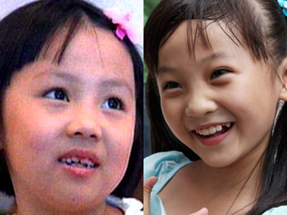 Lin Miaoke,right, was chosen to mime Ode to the Motherland