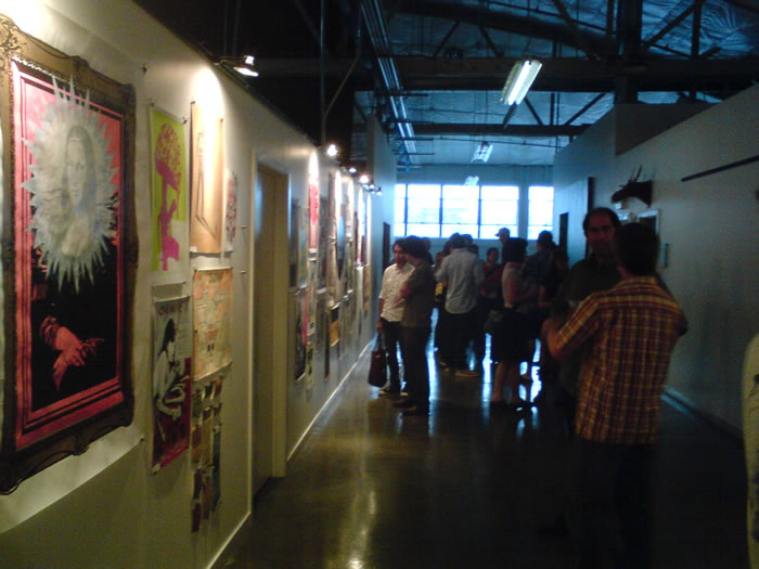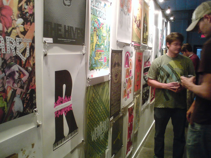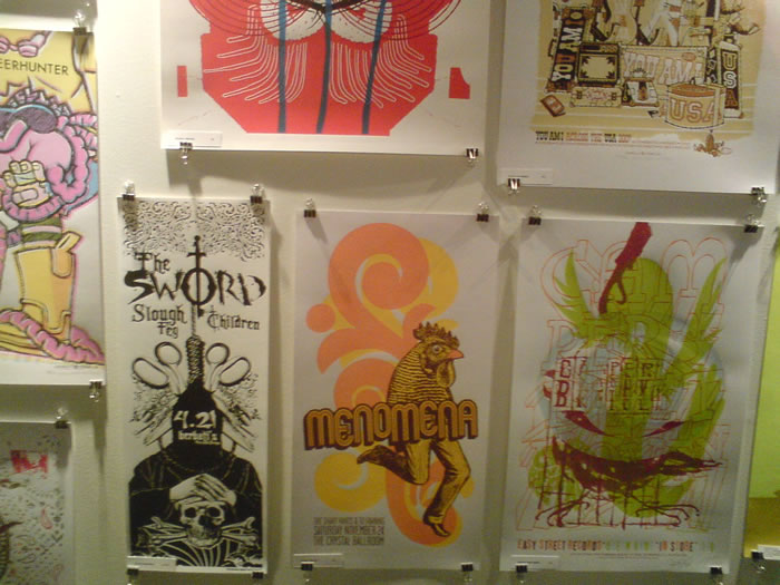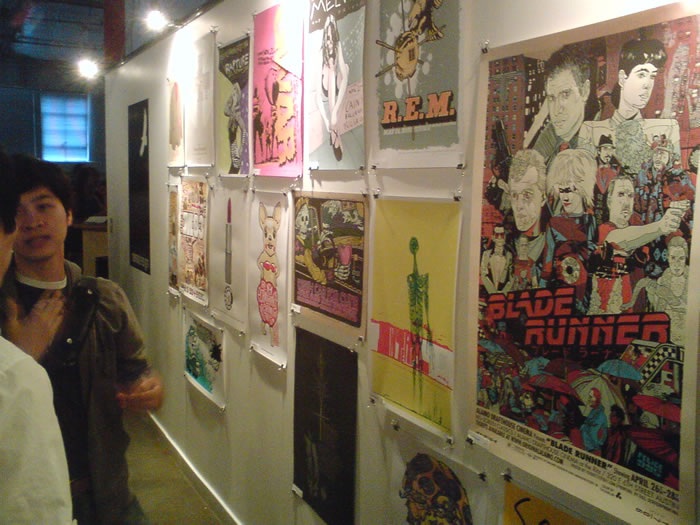 So my friend Andrio whom i had met at Seeking was in Portland for a month to do freelance work for Wieden+Kennedy and it was just a coincidence that he was having a group show here too. He invited me to go yesterday and i invited 2 of my other friends from Wieden along. It was cool seeing all the silkscreen posters….i miss the personal quality of silkscreened work, and for some insane reason, i sort of missed Pratt. Being in an ad agency, alot of the work becomes so impersonal, because it passes through so many hands, and more often than not, the final product isn’t even produced by the same person.
