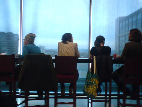So a few of us gathered to have dim sum in chinatown. It was pretty awesome and cheap and we walked around after to look at books and clothes. We bumped into John Jay in one of the stores and he invited us to visit his studio which was nearby. He was really friendly and for some reason he took a group shot of us in his studio. It felt kind of unreal, checking out his personal studio after his inspiring presentation the day before. We journeyed on to explore Portland and ended up in Powell’s books in the afternoon, the largest bookstore in USA, or so they claim. The good thing about Portland is that they have no sales tax, and so some of us splurged on books as much as we can before we went back to our tax-filled cities. Dinner was at 6.30pm, and a bunch of us decided to check out the Lebanese restaurant. One of the participants in W+K Seeking was performing that night in a bar in Portland, so we made our way down to give our support. It was pretty cool seeing a whole bunch of people from different cultures filling up the bar and making a whole lot of noise. I flew off that very night and that was the end of my W+K Seeking adventure.